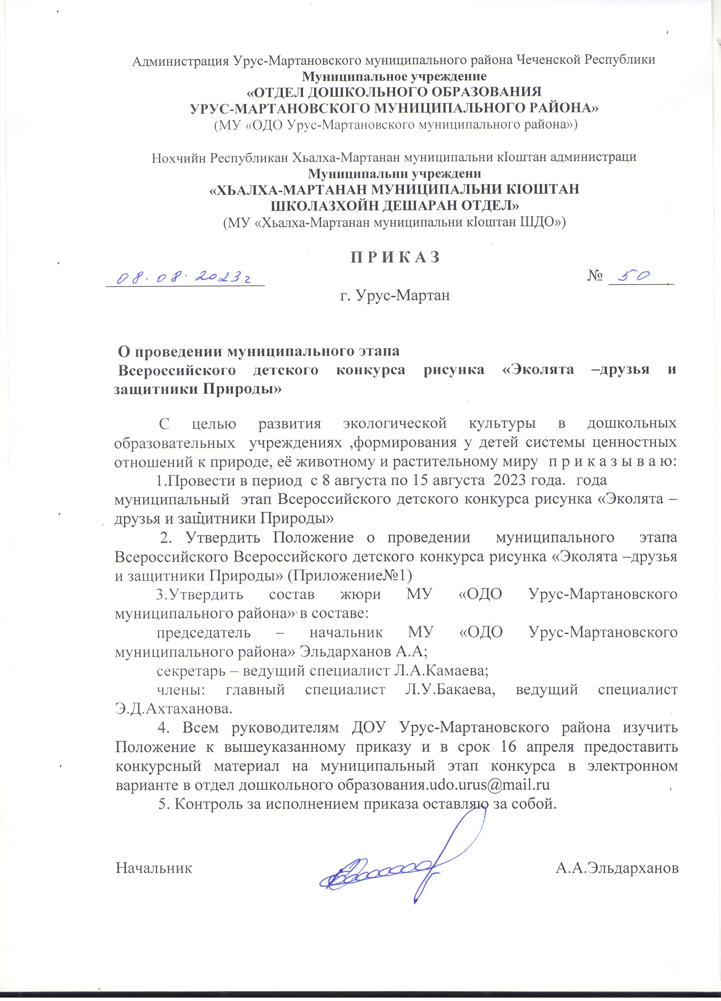 Приказ об утверждении Порядка предоставления учредителю отчета о результатах самообследования муниципальных бюджетных дошкольных образовательных учреждений Урус-Мартановского муниципального района