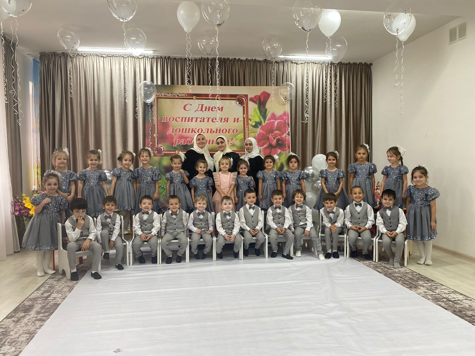 Праздничное мероприятие прошло весело, в непринужденной обстановке. Прозвучали поздравительные стихи и песни в адрес всех сотрудников детского сада. Все участники и гости получили массу положительных эмоций. И в завершении концерта, все дети подарили цветы сотрудникам и вместе потанцевали под веселую музыку.