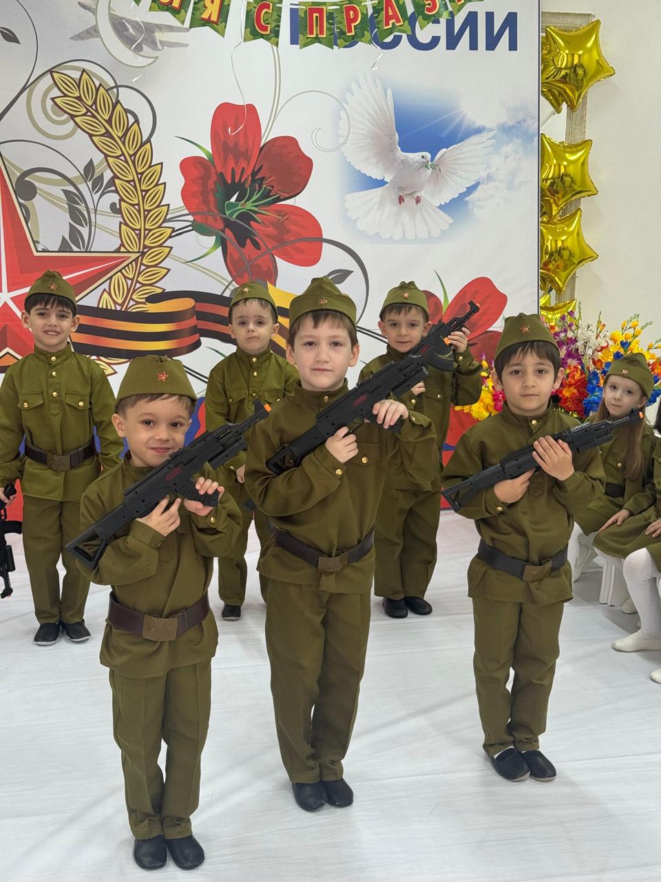 Каждый год в нашем садике проходит тематическая неделя к празднику «День Защитника Отечества». В течении недели в старшей и средних группах проводятся различные мероприятия: чтение художественной литературы, беседы, рассматривание иллюстраций по теме, просмотр видеофильмов, отгадывание загадок о военной технике, о разных родах войск. Завершаем тематическую неделю утренником. От всей души мы поздравляем дедушек, пап, братьев, мальчиков!!!