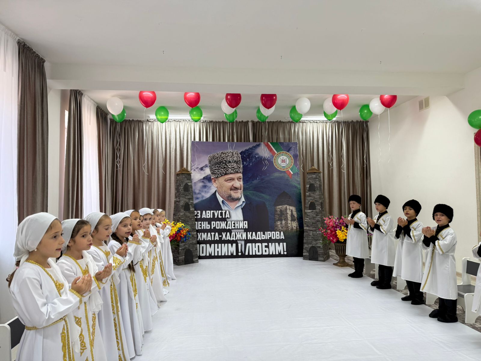 23 августа, в день рождения Первого Президента ЧР А-Х.А. Кадырова во всех группах ДОУ были проведены тематические беседы о жизни и делах Первого Президента ЧР А-Х.А. Кадырове. За короткий промежуток времени Ахмат-Хаджи Кадыров многое сделал для возрождения экономики, социальной сферы, обеспечения безопасности гражданского населения, восстановления достойного имени чеченского народа. В честь Первого Президента ЧР А-Х.А. Кадырова в ДОУ звучали песни, и дети читали стихи.