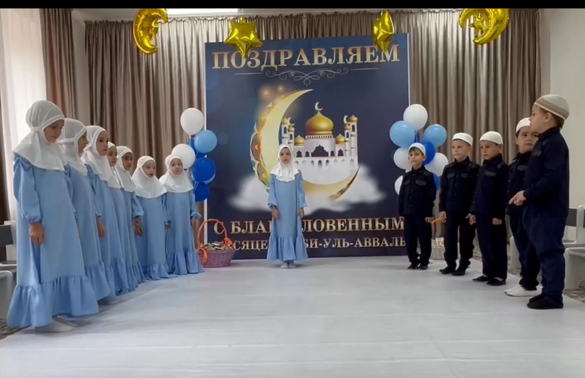 Дети читали стихи, исполняли песни-нашиды про Пророка (да благословит его Аллах и приветствует), а также показывали сценки.