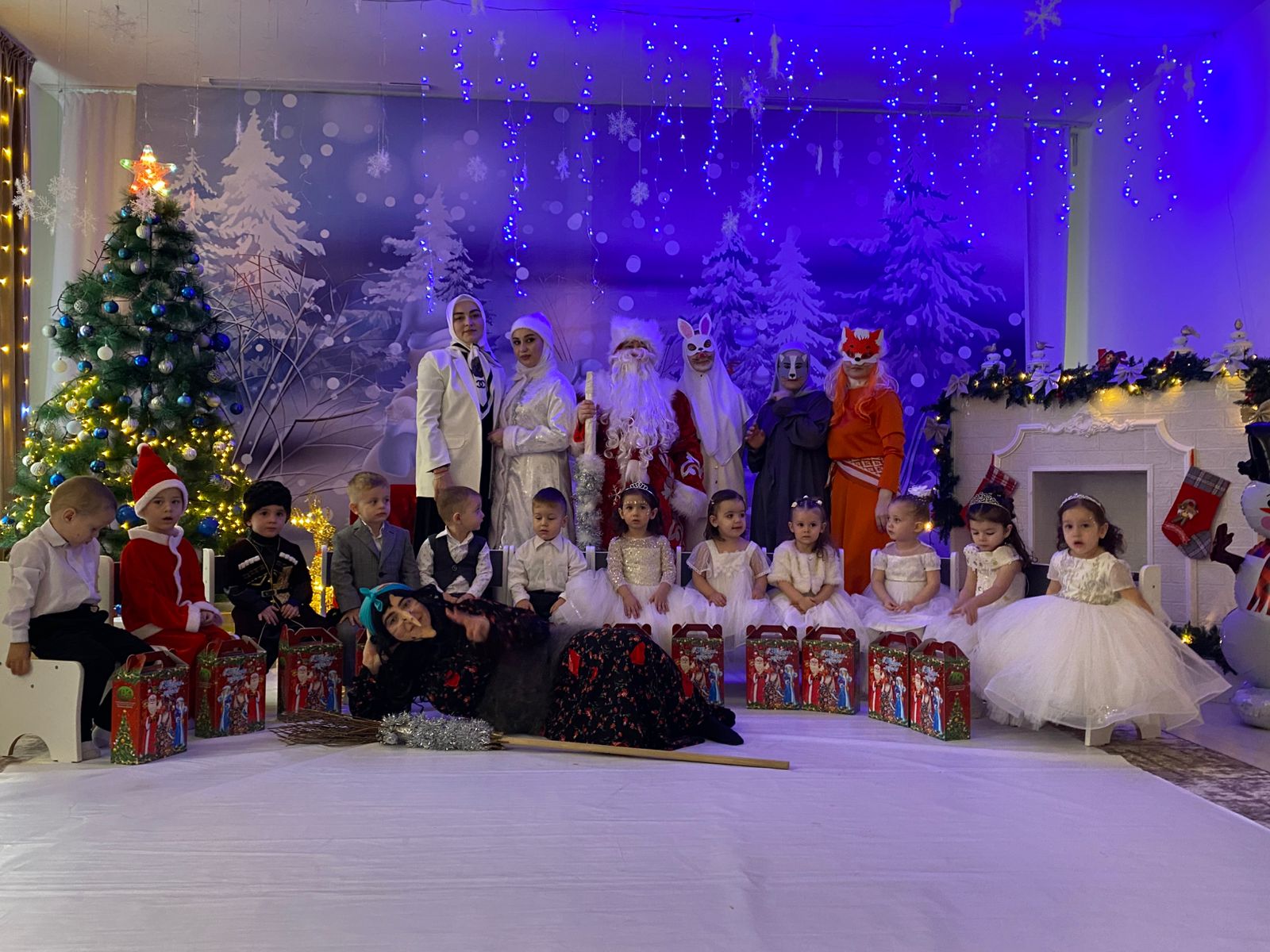 На утренники дети пришли в детский сад нарядные, весёлые в предвкушении праздника. И их надежды оправдались. Мы постарались от души. Воспитатели, участвовавшие, в новогоднем представлении, а была у нас запланирована сказка «Снежная королева» проявили себя хорошими артистами, показав всё своё творческое мастерство, артистизм, задор и организаторские способности. На каждом утреннике сказочные герои увлекли детей в волшебный мир сказки. Дети смогли окунуться в праздничную атмосферу приключений, поучаствовать в интересных конкурсах. С появлением Деда Мороза начался настоящий праздник с песнями и танцами, хороводами. После представления дети фотографировались с персонажами, получали новогодние подарки.